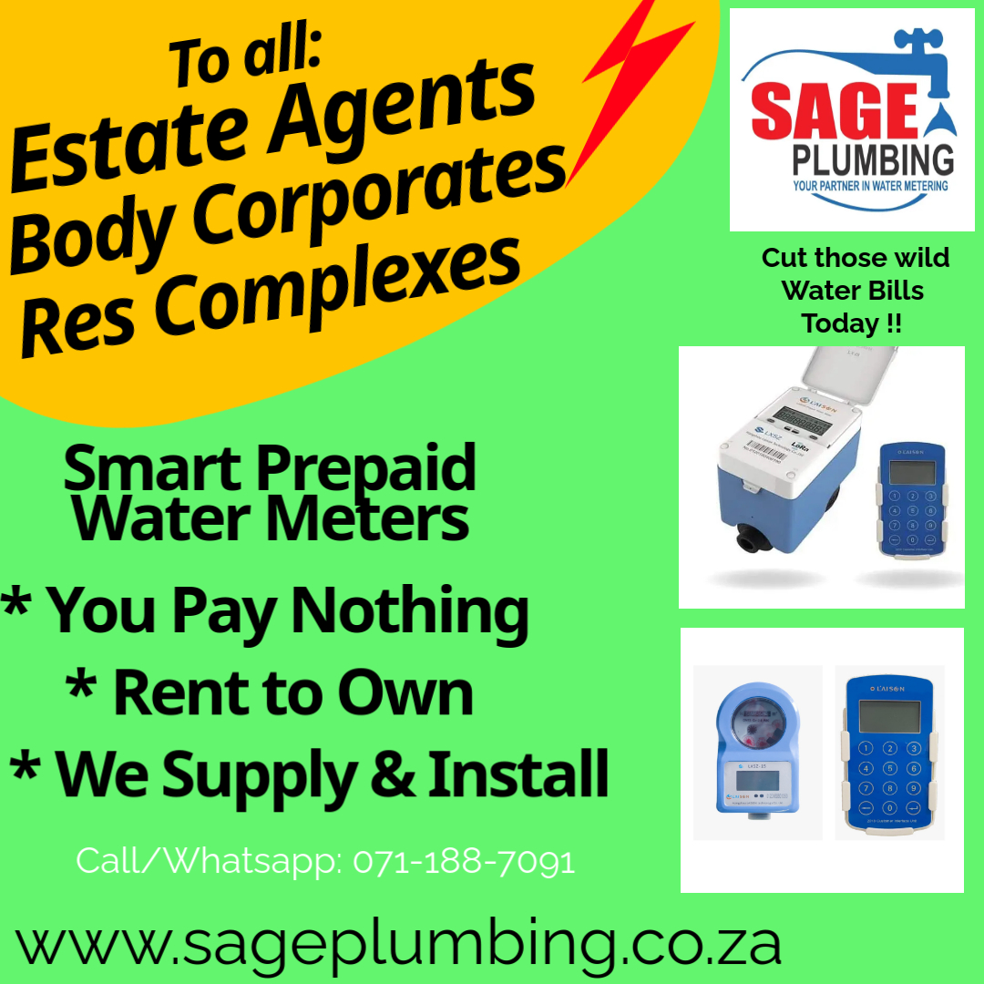 SAGE PLUMBING is an Authorized Distributor and Reseller of Prepaid Meters in the Western Cape, focusing on Sales, Installation, Maintenance and After Sales Support